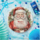 Plaques en papier avec une jolie aquarelle de style vintage. Le Père Noël dans son costume rouge avec des joues jolies et un visage souriant. Entouré de pins et de houx.