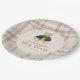 Host an unforgettable baby shower with these charming paper plates featuring a watercolor teddy bear and a rustic plaid design. The teddy bear, a symbol of comfort and childhood, is depicted wearing a distinguished plaid cape, set against a soft cream circle. The outer rim of the plate showcases a warm red and off-white plaid pattern, evoking a cozy and inviting atmosphere. These plates are perfect for a rustic, woodland, or vintage-inspired baby shower theme. Personalize with the baby's name and shower date for a personal touch that your guests will adore.
