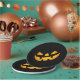 Face jack-o-lanterne effrayante sur plaques en papier noir.