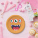 Un visage vert de monstre avec trois grands yeux et une bouche toothy. Observez, ou il mangera votre gâteau ! Amusement pour les fêtes d'anniversaire ou toute partie orientée de monstre.