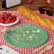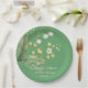 Assiettes En Carton Vivant Vert Jaune et Fleurs Blanches Douche