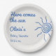 Assiettes En Carton Voici Le Baby shower Fils Bleu Main Tirée