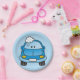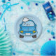Voiture de dessin animé bleu souriant avec bulles de savon.