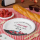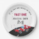 Quelle façon amusante de célébrer le 1er anniversaire de votre enfant! Cette plaque en papier présente une voiture de course rouge qui traverse une piste de course, avec les mots "Fast one" écrit en lettres rouges et sa première fois sur la piste. Personnalisez avec le nom du garçon d'anniversaire.L'assiette est offerte en différentes tailles et correspond à notre collection d'anniversaire rapide.