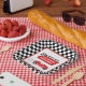 Ce bol en papier accrocheur mélange le charme vintage et le fantaisie ludique, avec une belle voiture de course rétro illustrée dans les tons rouge, noir et blanc éclatant.