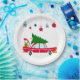 Assiettes En Carton Voiture rouge rétro portant un arbre de Noël