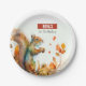 Vestiges d'automne plaques de papier de fête d'anniversaire avec un écureuil d'aquarelle. Pour les enfants nés en automne. Customisez ce produit en ajoutant les informations de votre partie.