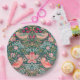 Elevate your party with these gorgeous paper plates using the iconic Strawberry Thief floral pattern by William Morris in unique hues of pink and green. This Art Nouveau pattern with birds, berries, and vibrant florals in blues, pinks, and greens is whimsical, classic, and luxurious.