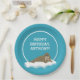 Ces plaques de papier de fête d'anniversaire sont parfaites pour quelqu'un qui aime les morses, mais leur graphisme cool glacé les rend parfaits pour les fêtes d'hiver et de patinoire. Ces fournitures de fête présentent une illustration dans un style réaliste d'un morse perché sur une feuille de glace ou un iceberg dressé contre un arrière - plan bleu turquoise. Votre message apparaît ci-dessus en lettres blanches.