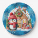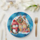 Une Plaque De Papier En Bleu Avec Des Flammes De Neige Blanches Et Le Centre De La Maison De Pingouin Et De Pain D'Or En Hiver