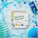 Get everything ready for a fun Mardi Gras celebration. Gold, green, and purple beads, ribbons, and fleur-de-lys in a watercolor effect are scattered around this paper plate. Mardi Gras masks, a King cake, and a crown feature on the bottom. Great addition to the table at a Mardi Gras or Fat Tuesday celebration, a Mardi Gras theme bridal or wedding shower, a NOLA bachelorette party, or a birthday celebration. Available with matching products.