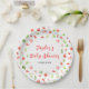 This beautiful and elegant plate features watercolor watermelon, pomegranate, strawberries, cherries and foliage. The text combines handwritten script and serif fonts for a stylish and modern look. This is perfect for a spring or summer rustic baby shower.