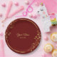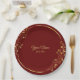 Wedding Golden Floral Geometric Wreath Red Party Paper Plate. Unique, beautiful, modern design. Easy to be personalized. Font style, size and colors can be changed. Matching items available.