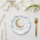 These are We're Over The Moon Boho Celestial Blue Clouds Baby Shower Paper Plates!