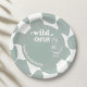 Serve up smiles and treats with these adorable 'Wild One' themed paper plates for your little one's first birthday celebration! Featuring a charming illustration of a dapper duck in a hat and boots, along with the 'wild one' text and your child's name and 1st birthday details. The stylish sage green background with a playful white organic checkerboard pattern creates a delightful backdrop for your party food. These sturdy, disposable plates make cleanup a breeze, allowing you more time to enjoy the festivities. Perfect for rustic, farm, or woodland-themed parties, these plates are a must-have for Noah's milestone birthday!