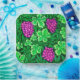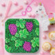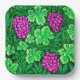 Plaques de papier dans une tapisserie vintage William Morris motif de raisins magenta / rouge-violet contre un arrière - plan de vignes vertes et feuilles, numériquement rehaussées et colorées