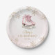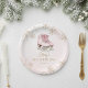 A beautiful ice-skating birthday paper plates featuring soft pink tones, elegant gold snowflakes, and watercolor ice skates. Perfect for winter birthdays and girls skating parties.