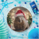 Cette image montre la chaleur festive d'un wombat avec un chapeau de Père Noël, assis à côté d'un arbre de Noël et de cadeaux avec un arrière-plan bokeh magique.