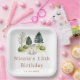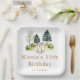 Plaque de papier de fête d'anniversaire rustique avec d'adorables loups et arbres. Parfait pour un anniversaire de printemps ou d'été. Les mots peuvent être changés en fonction de vos propres détails ou exigences