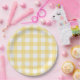 Whether for birthday, baby shower, bridal, or other special event, add this dainty yellow and white buffalo check (plaid) pattern plates to your decorations.