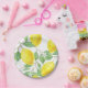 Créez une table festive avec cette assiette en papier à motif de citrons. Cette assiette présente une illustration aquarelle de citrons, de feuilles vertes et de fleurs blanches. Utilisez cette assiette de saison printanière et estivale pour vos besoins d'occasion ou pour une utilisation quotidienne.