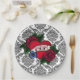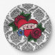 Assiettes en papier damassé noir et blanc vintage