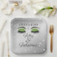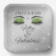 Célébrez l'anniversaire des cinquante ans avec ces assiettes en papier de fête carrées noires et vertes scintillantes élégantes et glamour. Ornées de yeux pailletés de vert et de diamants scintillants. Personnalisez-les avec un nom. Créées par Simply Farmhouse Press sur Zazzle.