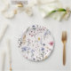 De charmantes assiettes en papier pour une fête de bébé champêtre ! Ornées de fleurs sauvages sur fond blanc cassé.