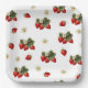 Assiettes en papier fraise avec fleurs sur fond bl
