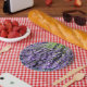 Un ensemble d'assiettes en papier présentant une photographie de tiges de lavande. Beau thème violet !