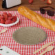 Assiettes en papier motif nature toile de jute rustique, assiettes pour mariage champêtre, vaisselle jetable pour événement à la ferme, assiettes jetables décor rustique bois.