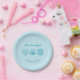 Assiettes en papier personnalisées bleues pour enterrement de vie de jeune fille Last Splash. Personnalisez avec les informations de la fête.