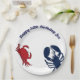 Assiettes en papier homard et crabe avec texte personnalisé pour toutes les occasions. Les assiettes blanches sont disponibles en deux tailles et comportent un texte bleu foncé incurvé en haut. Un homard bleu et un crabe rouge ornent l'assiette. Les couleurs rouge, blanc et bleu pourraient être utilisées pour le quatre juillet.