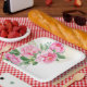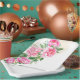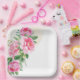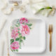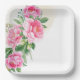 Cette assiette en papier est illustrée d'une belle impression de pivoines roses.