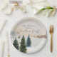 Assiettes en papier aquarelle de forêt hivernale élégante. Conçues avec des pins et de la neige en aquarelle. Cliquez sur Personnaliser pour modifier tout le texte. Articles assortis dans notre conception de fête Cava.