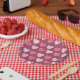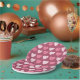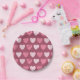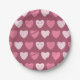 Des assiettes en papier rouge framboise avec un motif de cœur rose amusant .
