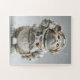 Un chat aux yeux larges et potelé se dresse fièrement dans un ensemble spatial blanc détaillé, une visière vers le haut et une patte élevée en salut. Les textures arrière - plans et croquantes, propres et douces, rendent cette scie délicieuse à construire et adorable à exposer. Parfait pour les enfants, les futurs astronautes et les amoureux de les chats. Choisissez votre taille et nombre de pièces préférées sur Zazzle.