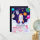 Astronaut, Espace Extérieur, Planètes Invitation Anniversaire est présenté en lançant une fusée avec un astronaute tenant un gâteau et beaucoup de planètes, astéroïdes, étoiles tournantes, et la lune, et en bas le texte moderne est utilisé pour améliorer l'élégance de cette invitation. Éblouissez votre invité avec ce modèle facile à éditer pour en faire une invitation d'une gentillesse.