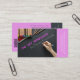 Le Carte de visite Art Workshop Pink Artist présente une activité artistique sur une surface noire avec des fournitures d'art. Il a une typographie propre, avec un nom d'entreprise rose angled au centre et la liste des services d'affaires à l'avant. Le nom de l'entreprise à l'arrière est sur une bande noire position verticale. De plus, les détails de l'entreprise sont dans un arrière - plan rose plus le code QR. L'ensemble du concept est contemporain et ludique, ce qui le rend passionnant pour un carte de visite d'artiste.