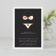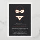 Une invitation à la douche en lingerie simple et élégante est munie d'une lingerie en feuille d'or rose, avec les tailles de la mariée travaillées dans le design. Personnalisez avec vos détails de douche nuptiale de lingerie sous en lettres blanches sur un arrière - plan noir de charbon de bois. Les invitations se retournent vers les rayures rose et blanc pastel.