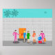 You are invited to the social event of the year with this Atomic Palm Springs Stewardess Party poster design. Join these three vintage flight attendants from rivaling airlines as they check into their kitschy 1960s breezy block hotel. One of the fabulously hunky bellhops in a retro hot pink uniform holds the orange door while the other struggles with the women's luggage. Teal palm trees sway in the background of the impossibly turquoise sky as a jetliner flies overhead. This design will have you saying, “On your mark, jet set, go!”