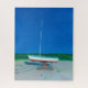 Une peinture d'un seul voilier dans une marina par une fin de journée de printemps avec un ciel bleu profond en arrière-plan. L'œuvre d'art concerne l'attente de l'été qui commence en Nouvelle-Angleterre et le plaisir sur l'eau qui vient avec le fait de vivre dans une ville côtière.