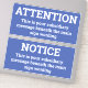 Deux avis d'attention comme autocollants. Modifiez le libellé pour afficher votre propre message sur chacun. Grande taille. 30 cm de large.