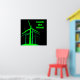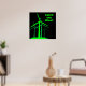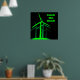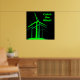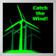 Attrape le vent ! - affiche noire avec lettrage au vent vert vif et graphique à grappe de turbine éolienne.