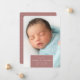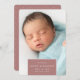 Le faire-part de naissance moderne et chic est doté d'une seule photo verticale/portrait avec un élément de bannière rectangulaire en bas, portant le nom du bébé, la date de naissance et les statistiques de naissance. Ajoutez un message personnel à l'arrière, ainsi qu'une photo supplémentaire.
