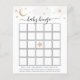 Carte de bingo baby shower avec nuages gris aquarelle et étoiles dorées. Une façon amusante d'interagir avec les invités de douche pendant que la future maman ouvre ses cadeaux.