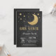 Sur l'Invitation du Baby shower de la Lune. Parties scintillant d'or et arrière - plan de tableau noir. Pour plus de personnalisation, cliquez sur le bouton "Customiser" et utilisez notre outil de conception pour modifier ce modèle.