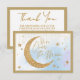 Envoyez une note de remerciement magique à vos invités de fête avec cette carte de baby shower personnalisée Over the Moon. Contre un arrière - plan de nuages capricieux, ce carte de remerciements de baby shower présente une lune d'or et des étoiles. Il s'agit d'un design parfait pour des baby showers sans distinction de genre et plus encore! Coordination des invitations pour les douches pour bébés, décoration et panneaux également disponibles.