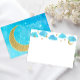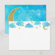 Envoyez des remerciements sincères avec ce carte de remerciements de baby shower rêveur qui présente une lune brillante de croissant d'or, des nuages bleus d'aquarelle et des étoiles dispersées. L'avant affiche "Merci" en blanc croustillant sur un arrière - plan de nuit magique, tandis que l'intérieur est laissé vide pour votre message personnalisé. Un match parfait pour votre lune et étoiles thème baby shower ou célébration céleste.