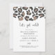 Cette invitation à la bachelorette et modèle d'itinéraire comporte un motif empreinte de léopard et une police manuscrite. Utilisez ce modèle pour modifier le libellé *most*, la police, la couleur de police et la couleur de l'arrière - plan afin de correspondre au style de votre événement. Cette invitation est parfaite pour votre week-end de plage sauvage ou de jungle.